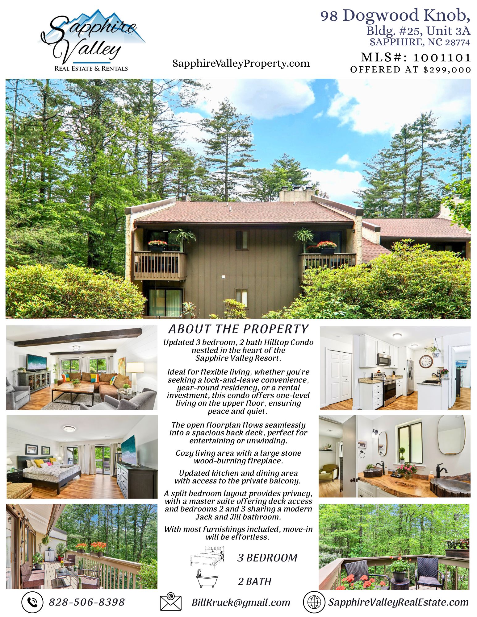 Updated 3 bedroom, 2 bath Hilltop Condo nestled in the heart of the Sapphire Valley Resort!
