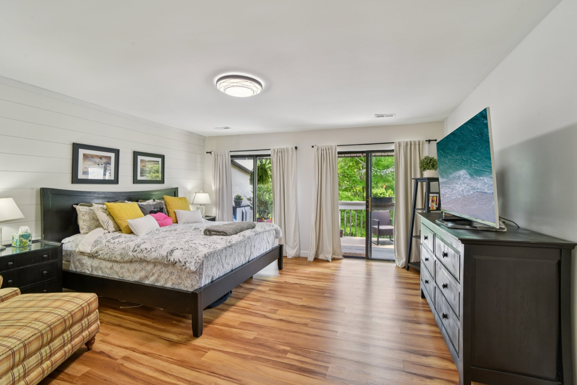 Beautifully renovated modern mountain spacious three-bedroom, 2-bathroom condo flooded with natural light and fully furnished, including outdoor furniture and planting. Full size washer and dryer also included. Updated throughout - HVAC and large condenser, drywall including ceilings, electrical, plumbing along with granite counters, laminate flooring and custom baseboards throughout, ceiling beams and shiplap accents. Open floor plan great for entertaining - balcony deck entries off dining room and all bedrooms including expansive living room deck (approx. 32x7½), each with custom 2x4 handrails for beverages and planter boxes. Large stone wood burning fireplace showcases the living room. Split bedrooms, expansive master bedroom with ensuite and secondary bedrooms share Jack & Jill bathroom. Pull-down attic with ladder for additional storage. Private end unit, tucked away at the end of a quiet cul-de-sac. Turnkey move-in ready whether it’s your primary property, a weekend getaway or utilized for vacation rentals. Direct access within development from condo to Lake Fairfield with boat house, multiple hiking trails and waterfall. Access to Sapphire Valley Master Association amenities including pools, rec center, fitness center, tennis, and golf. Don’t miss your opportunity to claim a slice of paradise experiencing the idyllic charm and peacefulness of the beautiful and iconic mountains of Western NC. Beautiful unit, $299K firm, cash offers only.